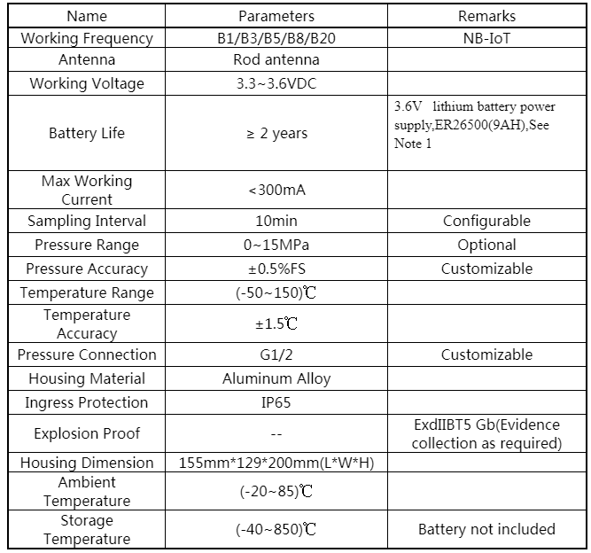 The main technical indicators of the wireless pressure & temperature monitor are shown in Table 1.